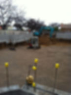 Cut, fill and compaction. Building foundations and concrete pedestrian access path.
